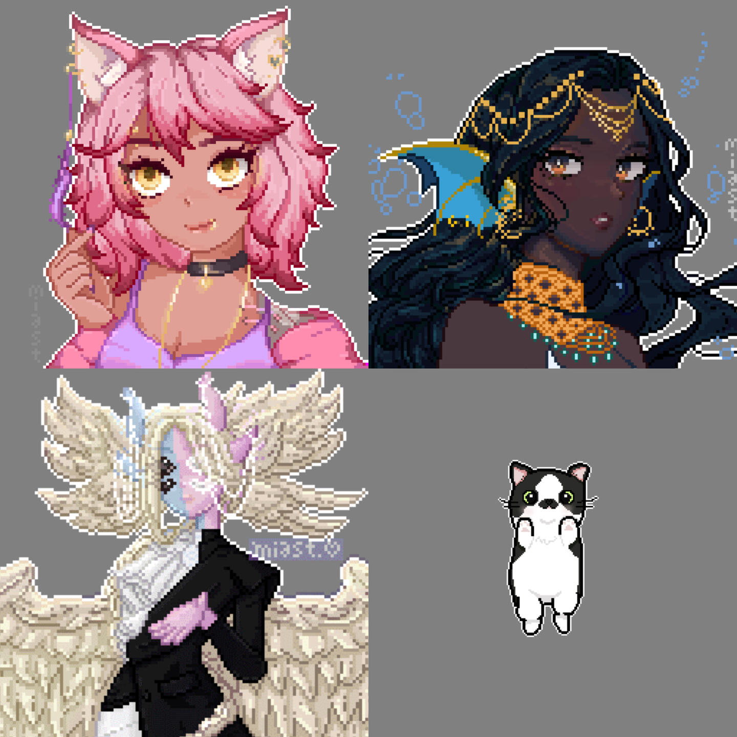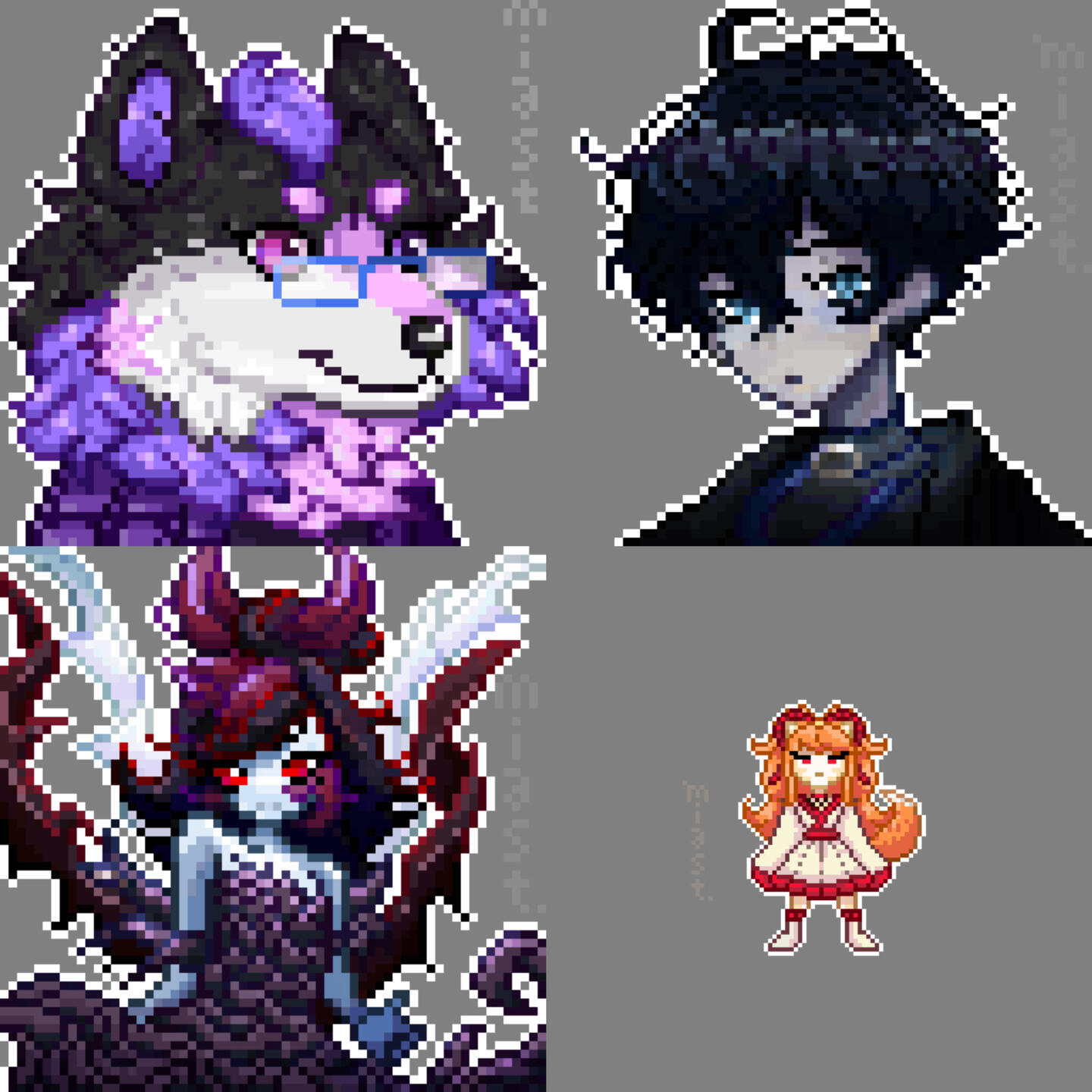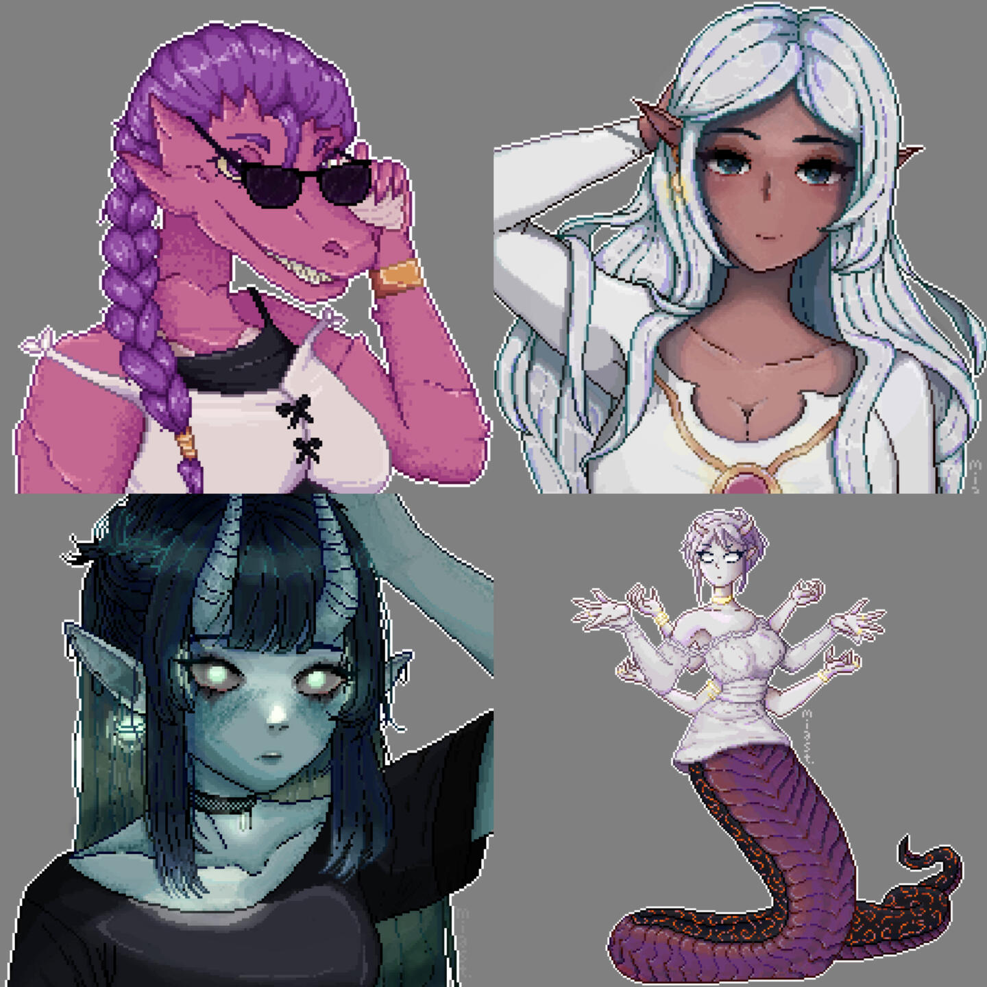 Pixel characters, animals, fantasy, oc's, fanart, nsfw, DnD, etc.